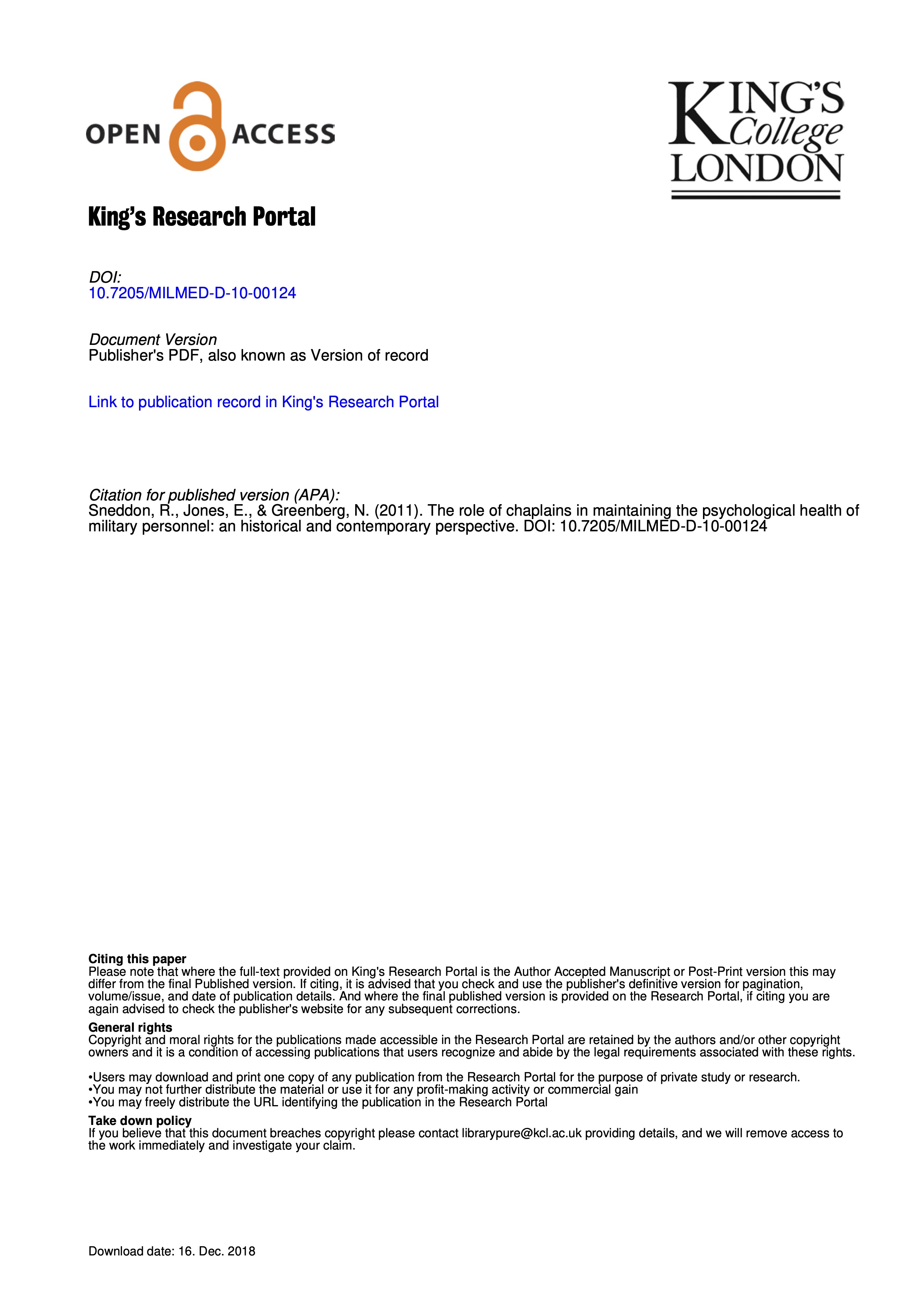 To read or download Military Chaplaincy in the USA: An Unfolding of Roles and Functions, follow the link below. You will need to sign up for a free www.academia.edu account. Military Chaplaincy in the USA: An Unfolding of Roles and Functions | |