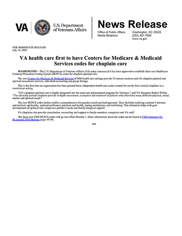 This short article was delivered at the Military Chaplains Association conference in Arlington, VA this past October and I heard it live from Prof. Robert Tuttle of George Washington University (https://www.law.gwu.edu/robert-w-tuttle), an expert on Constitutional law with a specialization of Church and State issues. I urge all military chaplains to become familiar with this article: Ethics and Religious Counseling in a Pluralistic Environment [PDF]. The whole edition and past editions can be found at https://www.mca-usa.org/magazine/. Also, the MCA is an excellent professional organization that all military and VA chaplains should join, in my opinion. Dave | |